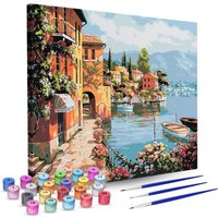 Rubye Malen nach Zahlen Erwachsene – Italienische Küste – Inklusive Farbe und Pinsel – Leinwand Malerei Leinwand – Farbe nach Zahlen – 40x50cm