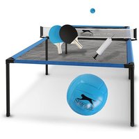 Suchen Sie nach einem kompletten Spielset für stundenlangen Spielspaß? Dann ist der Slazenger Spyder Air Tischtennistisch perfekt für Sie. Dieser kompakte Tischtennistisch hat eine Platte aus Netz. Dadurch wiegt sie nur 7 Kilogramm und Sie können sie überallhin mitnehmen. Das Tischtennis-Set wird mit zwei Schlägern, einem Ball, einer Ballpumpe und zwei Tischtennisbällen geliefert. So können Sie mit der Spyder Air Tischtennisplatte verschiedene Spiele spielen, darunter Tischtennis, Tischtennis, Rundlauf und sogar Fußvolleyball. Die Tischtennisplatte misst 240 x 120 x 63 Zentimeter. Damit ist sie ideal für Kinder ab 6 Jahren geeignet, aber auch Erwachsene können sie nutzen. Ein Produkt mit vielen MöglichkeitenMit dem Slazenger Spyder Air Tischtennistisch werden Sie stundenlang Spaß haben. Der Tisch wird als komplettes Set mit Netz, Ball, Ballpumpe, zwei Tischtennisbällen und zwei Schlägern geliefert. Dank dieser Eigenschaften können Sie mit dem Spyder Air-Set problemlos verschiedene Spiele spielen. Mit den Schlägern und Tischtennisbällen können Sie eine Partie Tischtennis oder Tischtennis spielen. Der Ball kann für das bekannte Schulhofspiel verwendet werden: Rund um den Tisch. Aber auch Fußvolleyball ist mit dem Spyder Air Set möglich. Leicht und kompakt Das Slazenger Spyder Air Tischtennisset hat einen großen Vorteil: Es ist viel leichter als herkömmliche Tischtennisplatten und Tischtennistische. Das liegt daran, dass die Platte aus einem Netz statt aus einem festen Material besteht. Dadurch wiegt der Tisch weniger als 7 Kilogramm und kann problemlos mit in den Urlaub genommen oder zum Grillfest der Familie mitgebracht werden. Außerdem können Sie ihn in den kälteren Monaten auch drinnen aufstellen, um stundenlang Spaß zu haben. Der Spyder Air Tischtennistisch misst 240 x 120 x 63 Zentimeter. Damit ist er ideal für Kinder ab 6 Jahren geeignet, aber auch Erwachsene können ihn nutzen. Merkmale Slazenger Tischtennistisch Spyder Air Material: Kunststoff (Polypropylen und PVC) Farbe: blau, schwarz Maße: 240 x 120 x 63 cm (LxBxH) Inkl. 1x Tischtennisplatte, 2x Schläger, 1x Ball, 2x Tischtennisbälle, 1x Ballpumpe, 1x Anleitung Alter: ab 6 Jahren