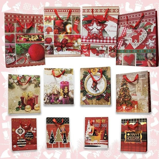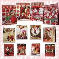 Sortiment von 12 weihnachtlichen Geschenktüten mit Seilgriffen und passenden Geschenketiketten – 4 große (31 x 40 cm), 4 mittlere (26 x 32 cm) und 4 kleine (18 x 24 cm)