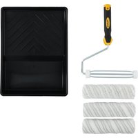 Mit diesem praktischen Malerset von STANLEY, bestehend aus einer Farbwanne, einem Rollenhalter und drei 230-Millimeter-Farbrollen, können Sie jeder glatten oder halbglatten Oberfläche schnell einen neuen Look verpassen. Gleichmäßiger FarbauftragDie Walzen sind mit einem weißen Polyacrylfell beschichtet, ein Material, das für eine gleichmäßige Farbverteilung beim Auftragen sorgt. Die abgewinkelten Silberstreifen auf den Walzen verbessern die Griffigkeit auf dem Untergrund und sorgen für einen noch besseren Farbauftrag. Die Walzen lassen sich einfach auf den Halter aufsetzen, so dass Sie sofort mit dem Streichen beginnen können! Geeignet für eine Vielzahl von UntergründenDie Farbwanne hat auf einer Seite einen Boden zum Ausgießen der Farbe, während die andere Seite eine gerippte Oberfläche hat, über die Sie die Walze bewegen können, um die Farbe optimal zu verteilen. Diese Walzen sind speziell für die Verwendung von Farben auf Wasserbasis auf glatten und halbrutschen Oberflächen konzipiert. Produktinformation: Inhalt: 3 Walzen, 1 Halter, 1 Tablett Abmessungen der Walzen: L 230 mm Ø 38 mm Nur für wasserlösliche Farbe geeignet Ideal für glatte und halbrutsche Oberflächen