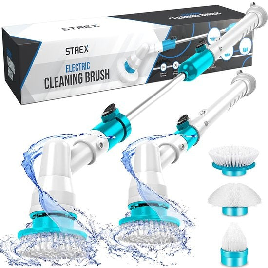 Strex Elektrische Reinigungsbürste – Kabellose Schrubbbürste – Schrubber – 3 Aufsätze – Teleskopstiel – Polierer mit leistungsstarkem Akku