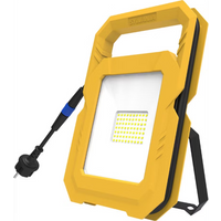 Sylvania LED Gebäudeleuchte 50W – SylWork Flutlicht Die Sylvania SylWork LED-Baulampe in auffälliger gelber Farbe ist die ideale Beleuchtungslösung für jede Arbeitsumgebung. Durch ihr kompaktes und leichtes Design ist diese Leuchte leicht zu bewegen und flexibel zu positionieren, ob freistehend oder auf einem Stativ montiert. Die leistungsstarke Lichtleistung von 5000 Lumen in hellem Weißlicht (4000K) sorgt für hervorragende Sichtbarkeit bei Arbeiten auf dem Bau, in der Werkstatt, in der Garage oder bei Renovierungen. Diese Arbeitsleuchte ist mit einem robusten Kunststoff- und Metallgehäuse, einer Glaslinse und einem stabilen Metallstativ für den intensiven Einsatz konzipiert. Dank der Schutzart IP65 ist die Leuchte staubdicht und strahlwassergeschützt und somit für den Einsatz im Innen- und Außenbereich geeignet. Die integrierte LED-Lichtquelle bietet eine lange Lebensdauer von 30.000 Stunden und ist äußerst energieeffizient.> Warum dieses Produkt eine gute Wahl ist: Auffällige gelbe Farbe für zusätzliche Sichtbarkeit und Sicherheit Starke Lichtleistung von 5000 Lumen Kaltweißes Licht (4000K) für helle Arbeitsbeleuchtung Geeignet für Stativmontage – auch mit zwei Lampen gleichzeitig IP65 – resistent gegen Staub und Strahlwasser Schlankes, platzsparendes Design, leicht zu verstauen Solide Konstruktion aus Kunststoff, Metall und Glas Produktspezifikationen: Marke: Sylvania Serie: SylWork Flutlicht Wattleistung: 50W Lichtleistung: 5000 Lumen Lichtfarbe: 4000K (helles Weiß) Farbwiedergabe-Index (CRI): >80 Spannung: 220 – 240V Abmessungen (BxTxH): 226 x 65 x 65 mm Gehäusefarbe: Gelb Gehäuse: Metall/Kunststoff Schutzart: IP65 (staubdicht und spritzwassergeschützt) Stoßfestigkeit: IK07 Lebensdauer: 30.000 Stunden (L70/B50) Anschlussart: Terminal mit 3-poliger Verdrahtung Länge des Anschlusskabels: 2,5 Meter Mit Steckdose: Ja Material Linse: Glas Betriebstemperatur: -20°C bis +40°C Energieeffizienz: Bis zu 111 lm/W