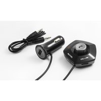 Der FM-Transmitter bietet mehrere Funktionen in einem Gerät. Sicheres Fahren und Telefonieren über Bluetooth-Freisprecheinrichtung Einfache Bedienung mit 2 Tasten Unterstützt MicroSD-Karten bis zu 32 GB AUX-IN-Anschluss DSP-Rauschunterdrückung und Echounterdrückung für kristallklare Gesprächsqualität LED-Statusanzeige FM-Transmitter, Bluetooth-Hörer und Ladestation in einem. Die LED-Statusanzeige zeigt Ihnen u.a. Betriebsart, Frequenz und Lautstärke an. Befestigen Sie die FM-Einheit einfach mit der 3M-Klebefläche. Technische Daten Einstellbare Lautsprecherlautstärke Bluetooth V2.1 + EDR mit ~10m Übertragungsreichweite Bluetooth-Protokoll: AVRCP V1.5, HFP V1.5, A2DP V1.3 Stromversorgung: DC 12-24V (Zigarettenanzünder) LED-Anzeige: (LxB) ca. 20 x 8 mm Frequenzbereich FM 87,5 – 108,0 MHz, max. 5 m Frequenzgang 20 Hz-15 KHz Musikformat: MP3, WMA USB-Ladeausgang: 5 V / 2,1 A max. Abmessungen 57 x 28 mm (ØxT) Kabellänge FM-Gerät zum Ladegerät: ca. 84 cm Gewicht 61 g (FM-Gerät mit Kabel + Ladegerät)