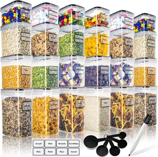 TNM Vorratsdosen – 24 Stück – luftdicht – inkl. schwarzer Löffel und Aufkleber