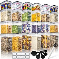 Willkommen bei TNM – der Marke, die Ihr Zuhause in ein organisiertes und stilvolles Zuhause verwandeltUnsere hochwertigen und praktischen Haushaltsprodukte werden Ihnen helfen, Ihre Küche zu organisieren und Ihr Leben zu Hause zu verbessern. Unser Sortiment von 10 verschiedenen Produkten wurde mit einem Auge für Details und Stil entworfen, so dass Ihr Zuhause nicht nur aufgeräumt aussieht, sondern auch gut aussieht. Wir denken mit unseren Kunden mit und wenn etwas nicht stimmt, können Sie sich jederzeit an uns wenden und wir werden bei Bedarf etwas nachliefern. Wir schätzen das Feedback unserer Kunden, um die Produkte ständig zu verbessern. Schonend für die Umwelt: Mit diesen Behältern können Sie Ihre Lebensmittel ewig aufbewahren und Verpackung sparen. Füllen Sie die Behälter im Laden auf und sparen Sie Einwegverpackungen Perfekt für die Aufbewahrung in der Küche: Set aus 24 Vorratsgläsern mit Deckeln. Dieses Set von 24 Gläsern enthält 2L (6 Stück), 1,6L (8 Stück), 0,8L (6 Stück), kommt mit 24 Aufklebern, um gelagerte Lebensmittel zu markieren, 1 Stift und 4 große Messlöffel. Geeignet für Mehl, Zucker, Snacks, Pop, Bio-Lebensmittel, Trockenfutter, Müsli, Getreide, Süßigkeiten oder andere Lebensmittel> Qualitätsmaterialien: Diese Vorratsdosen sind aus hochwertigem lebensmittelechtem Kunststoff, BPA-frei und FDA-zugelassen. Die Küchenvorratsdose kann gesund und sicher verwendet werden.> MULTIFUNKTIONALE AUFBEWAHRUNG: Jedes Vorratsglas ist mit einem Silikon-Dichtungsstreifen ausgestattet, um sicherzustellen, dass kein Wasser oder Luft eindringen kann. Dies erhöht die Frische und Gesundheit der luftdichten Vorratsgläser und hält die Körner frisch METRALTMs. Mit PRAKTISCHEN ETIKETTEN: Neben 16 Frischhalteboxen erhalten Sie auch 24 Etiketten, damit Sie nie wieder Mehl mit Puderzucker oder Backpulver mit Natron verwechseln können. Sie sind wiederverwendbar. Sie können den Inhalt jederzeit austauschen. Zum Austauschen einfach mit einem feuchten Tuch abwischen, abziehen und aufkleben, was Sie geschrieben haben. Außerdem gibt es 8 Aufkleber mit vorgeschriebenen Namen, die Sie sofort aufkleben können. Ob Sie nun unsere beliebten Vorratsdosen oder andere praktische Aufbewahrungslösungen für die Küche suchen, bei TNM sind Sie an der richtigen Adresse. Unser Ziel ist es, Ihr Zuhause in eine organisierte und stilvolle Umgebung zu verwandeln, in der Sie Ruhe und Übersicht haben.> Entdecken Sie, wie TNM Ihr Leben einfacher und stilvoller machen kann!