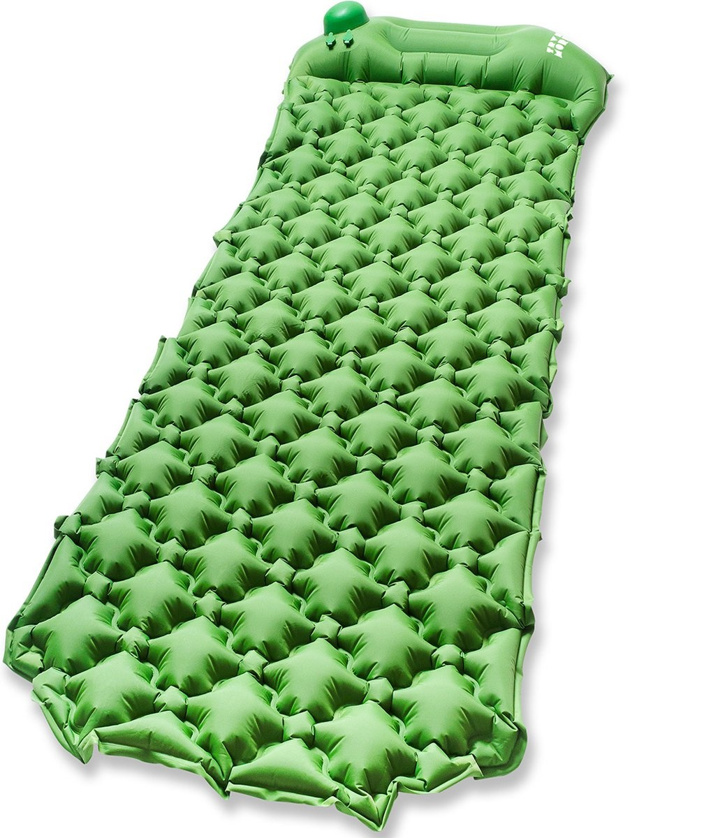TRVLMORE Schlafmatte – Selbstaufblasend – 1 Person – Eingebaute Pumpe und Kopfkissen – Grün