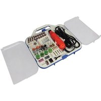 Velleman ELECTRICAL PRECISION Bohrer- und Gravierset – 162 Teile. Eigenschaften: * Zubehör: – elektrische Bohrmaschine: 10000-32000 U/min / mit Ein-/Ausschalter – biegsame Welle: idealer Aufsatz für präzise Präzisionsarbeiten oder schwer zugängliche Stellen – Spannmutter: 1 Stk. – Spannzangen: 4 Stk. – Diamantspitzen: 10 Stk. – Glasfaserverstärkte Trennscheiben: 5 Stk. – Trennscheiben: 62 Stk. – Gummipolierscheibe: 1 Stk. – Schleiftrommeln: 2 Stk. – Schleifbänder: 22 Stk. – Faltscheiben: 1 St. – Poliersteine: 12 Stk. – Stahlbürsten: 9 St. – Filzpolierköpfe und -scheiben: 7 St. – Siliziumkarbid-Schleifstein: 1 St. – Schleifscheiben: 10 Stk. – Dorne: 4 Stk. – Polierpaste: 2 Stk. – Bohrer: 6 Stück (2 x 1,5 mm, 2 x 2,3 mm, 2 x 3,1 mm) – Schraubenschlüssel: 1 M. Spezifikationen: * Physikalische Eigenschaften: – Kabellänge: 1,8 m – Anzahl der Teile: 162 * Nutzungsmerkmale: – Einstellbare Drehgeschwindigkeit: Ja – Drehzahlbereich: 10000-32000 U/min * Elektrische Anschlüsse: – Typ des Netzsteckers: Typ C (Eurostecker) * Stromversorgung: – Eingangsfrequenzbereich: 50 Hz – Eingangsspannungsbereich VAC: 220-240 V – Leistungsaufnahme: 135 W * Enthalten: – Inhalt des Sets: Elektrischer Bohrer: 10000 – 32000 U/min – mit Ein/Aus-Schalter Biegsame Welle Spannzangenmutter: 1 Stück Spannzangen: 4 Stück Diamant-Trennscheiben-Spitzen: 10 Stück Glasfaser-Trennscheibe: 5 Stück Trennscheiben: 62 Stück Gummipolierscheibe: 1 Stück Schleifwalzen: 2 Stück Schleifbänder: 22 Stück Schleifblätter: 1 Stück Poliersteine: 12 Stück Drahtbürsten: 9 Stück Polierfilze: 7 Stück Siliziumkarbid-Schleifstein: 1 Stück Schleifscheiben: 10 Stück Spindeln: 4 Stück Polierpaste: 2 Stück Bohrer: 6 Stück (2 x 1,5 mm, 2 x 2,3 mm, 2 x 3,1 mm) Werkzeuge: 1 Stück – Inklusive Koffer: Ja * Grundlegende Informationen zum Produkt: – Produktfarbe: Rot – Produkttiefe: 70 mm – Produkthöhe: 60 mm – Produktgewicht: 840 g – Produktbreite: 270 mm – Material: Polyamid 66