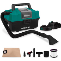 VONROC – Kompakter Allzwecksauger 20V – 2.0Ah – Inkl. Zubehör, 2 Akkus und Schnellladegerät – Grün/Schwarz