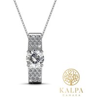 Yolora Damenhalskette mit Anhänger – Kalpa Camaka Kristalle – Silber – 18K Weißgold vergoldet – Damenhalskette Silber – Schmuck – Halskette – Luxuriöse Geschenkverpackung – Geschenkbox – Schöne Geschenkverpackung – Exklusive Geschenkverpackung