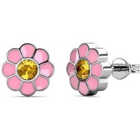Yolora Kids Pink Floral Earrings – Kalpa Camaka Crystals – 18K Weißgold vergoldet – Kind – Mädchen Ohrstecker Farbe Silber – Schmuck Kinder – Luxus Geschenkbox – Geschenkbox – Geschenkverpackung – Schöne Geschenkverpackung